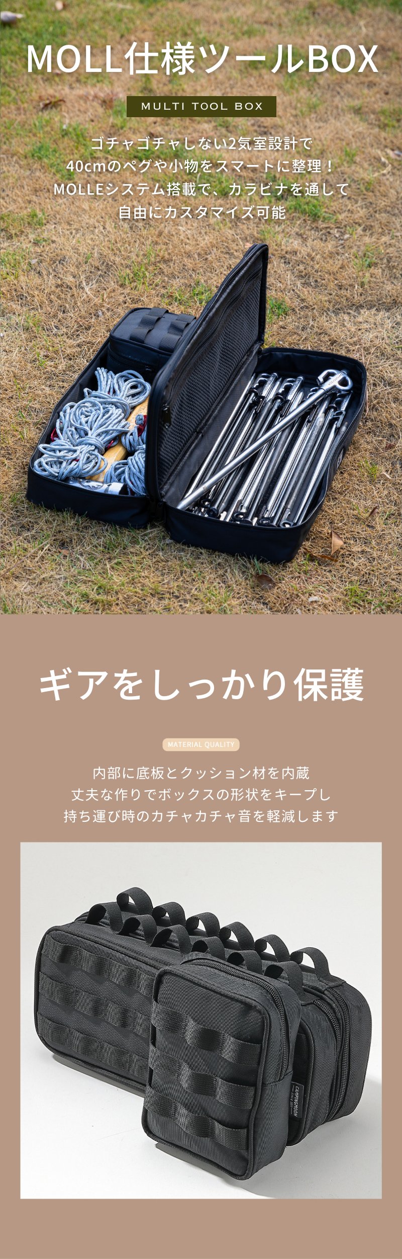 キャンピングムーン ペグケース ペグハンマー ペグ 40cm ランタン 収納ケース ツールボックスバッグ ギアケース ツールバッグ キャンプ ミニタリ― 多機能 Moll