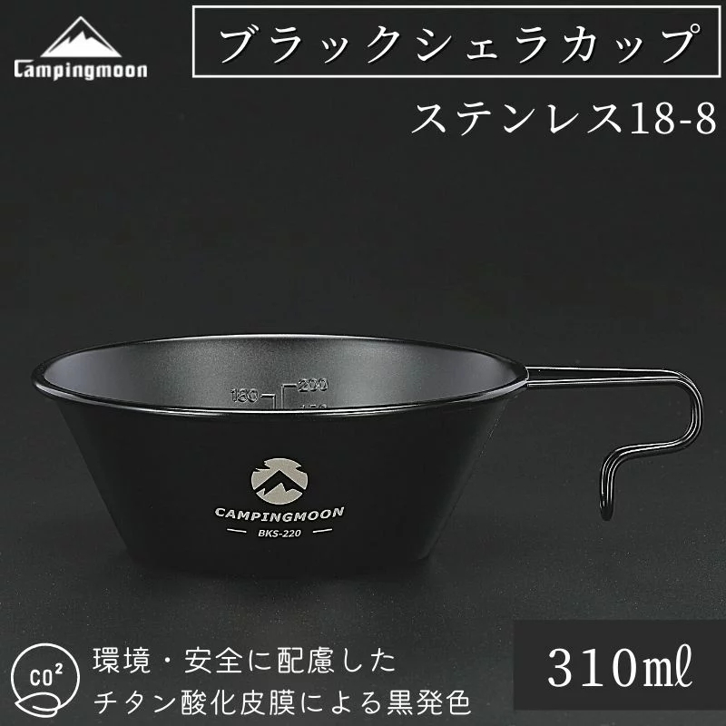 キャンピングムーン CAMPING MOON シェラカップ 黒 ブラック 直火 ok ステンレス キャンプ用 コップ キャンプ アウトドア 310ml BKS-220