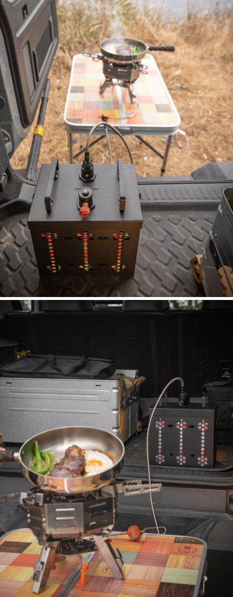 カセットガス(CB)最大6本迄を接続し同時に供することができるパワーユニットです。