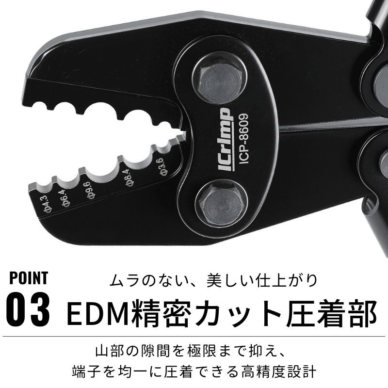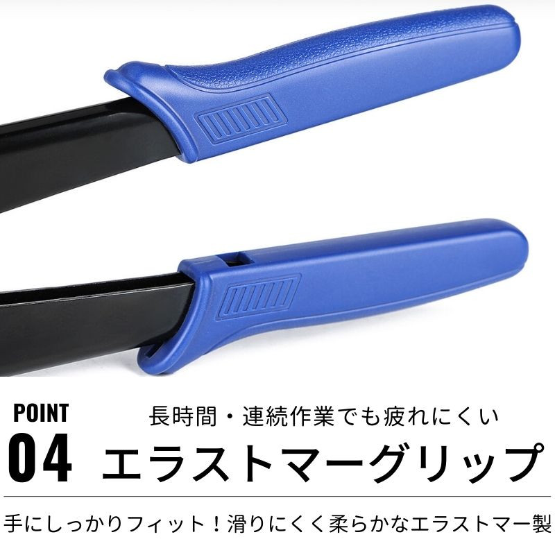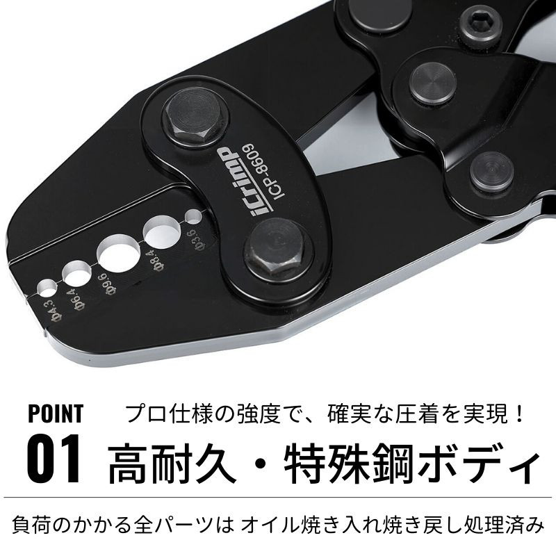 ※ 新品の場合、圧着工具(新品)のハンドル動作(リングやピン)がかたいことは正常です。しばらくお使いいただくことで少しずつなじみ、軽くなります。