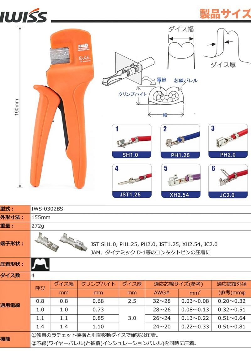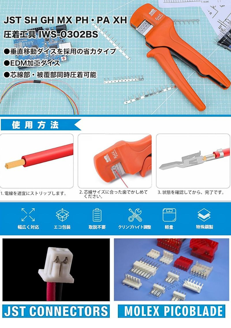 製品概要 JST SH1.0/GH1.25/MX1.25/ZH1.5/PH2.0の圧着に