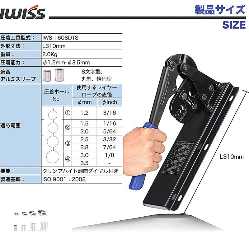 ワイヤーロープ アルミスリーブ 圧着工具 かしめ機 ベンチタイプ ワイヤー ロープ トグル機構 クリンプハイト ワイヤーロープ加工機 卓上 卓上型 調節