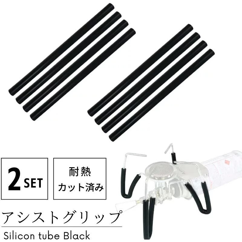 シリコンチューブ 耐熱 アシストグリップ レギュレーターストーブ ST-310 ST-340 用 内径 4mm 外径 9mm シングルバーナー ゴトク 滑り止め カット済み 8本 黒