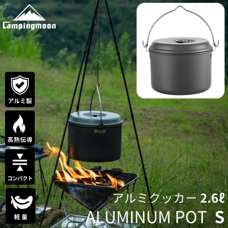吊り鍋 キャンプ クッカー アルミクッカー アルミポット アルミ鍋 鍋 軽量 直...