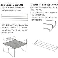 ■φ5mmの丸棒がダッチオーブンを載せれる強度を持っており、網のうえでシエラカップや、小型のコッフェル等の温めも可能です。