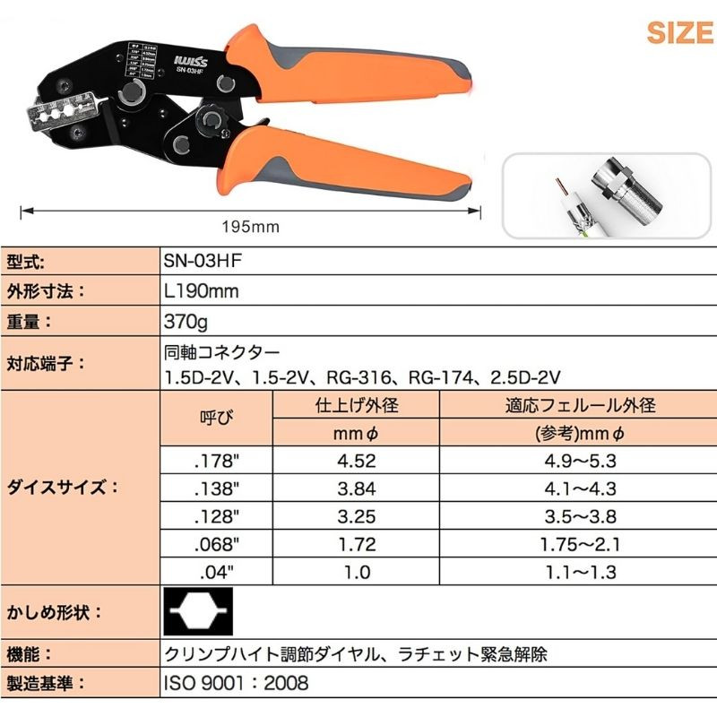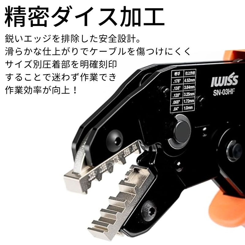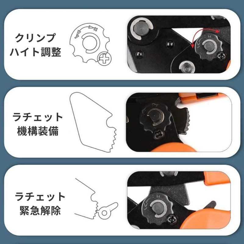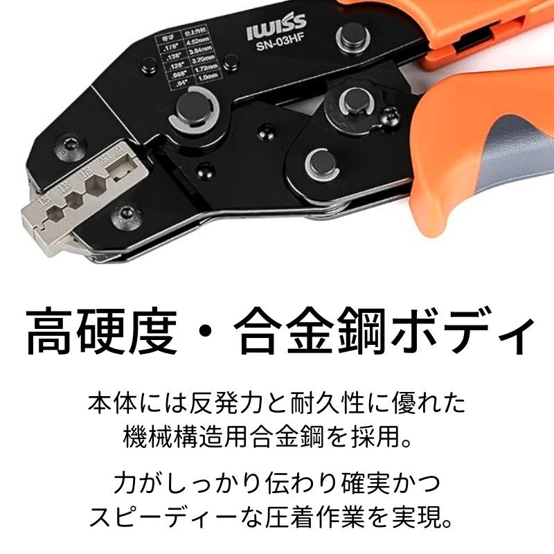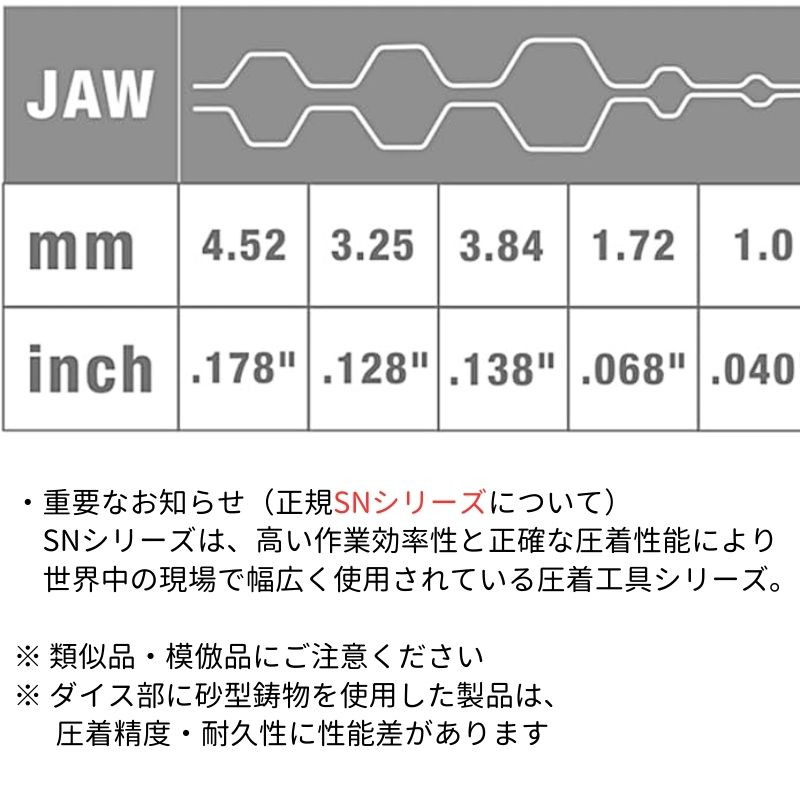 ・クリンプハイト調節ダイヤル、ラチェット緊急解除、粉末精密鋳造ダイス使用