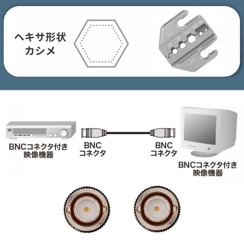 トーコネ製端子、カナレ製端子にはメーカー専用工具の方がいいです。肉厚が汎用品と異なりますので、本機種ではかしめ形状がよろしくありません。