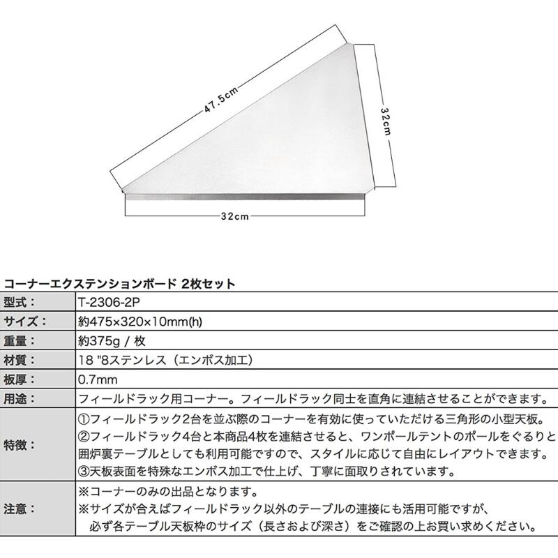 フィールドラック 天板 2枚 セット 囲炉裏テーブル 焚き火テーブル 耐熱 ステンレス キャンピングムーン コーナーエクステンション エンボス加工 焚き火