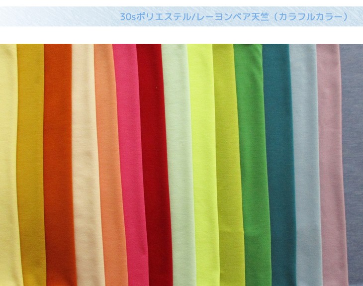 30sポリエステル/レーヨンベア天竺(カラフルカラー) 布 生地 手作り カット50cm単位(商品番号:12780-2)