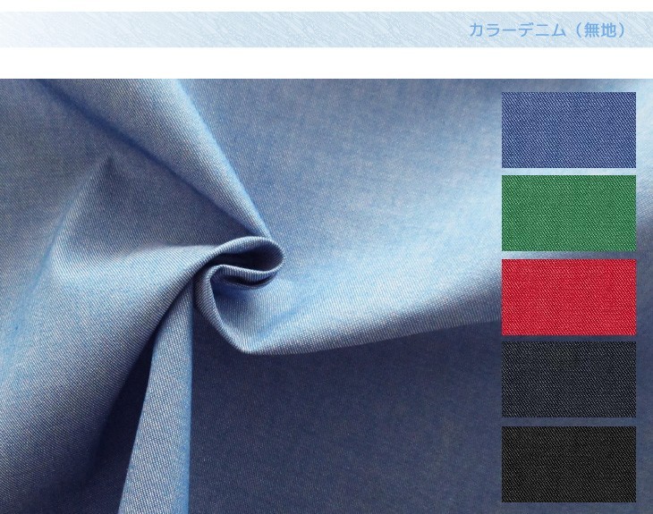 洗濯によって発生する色落ち・縮み・シワなどが極めて少ない耐久性の高いカラーデニム。