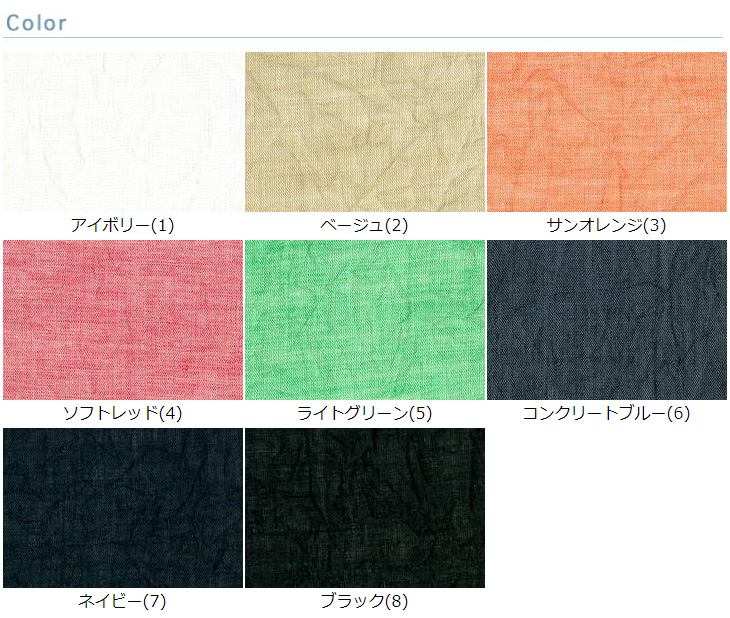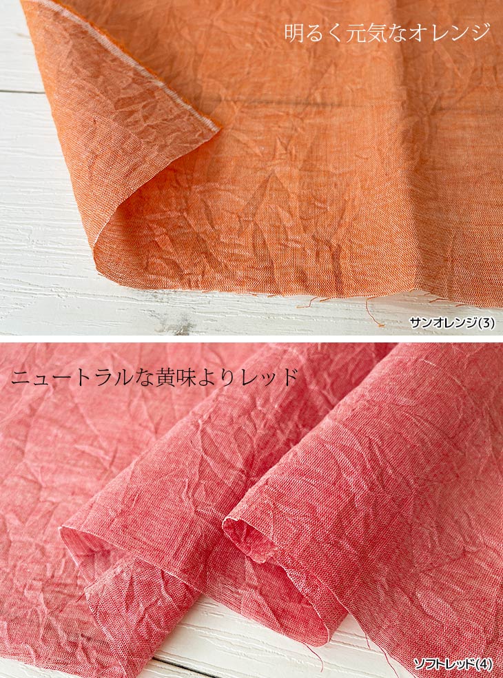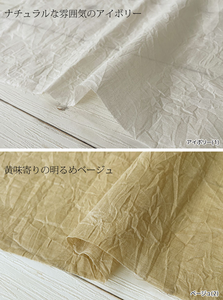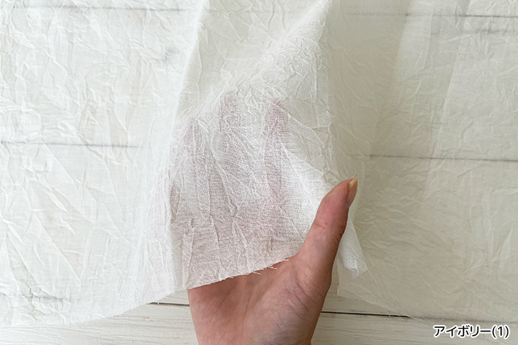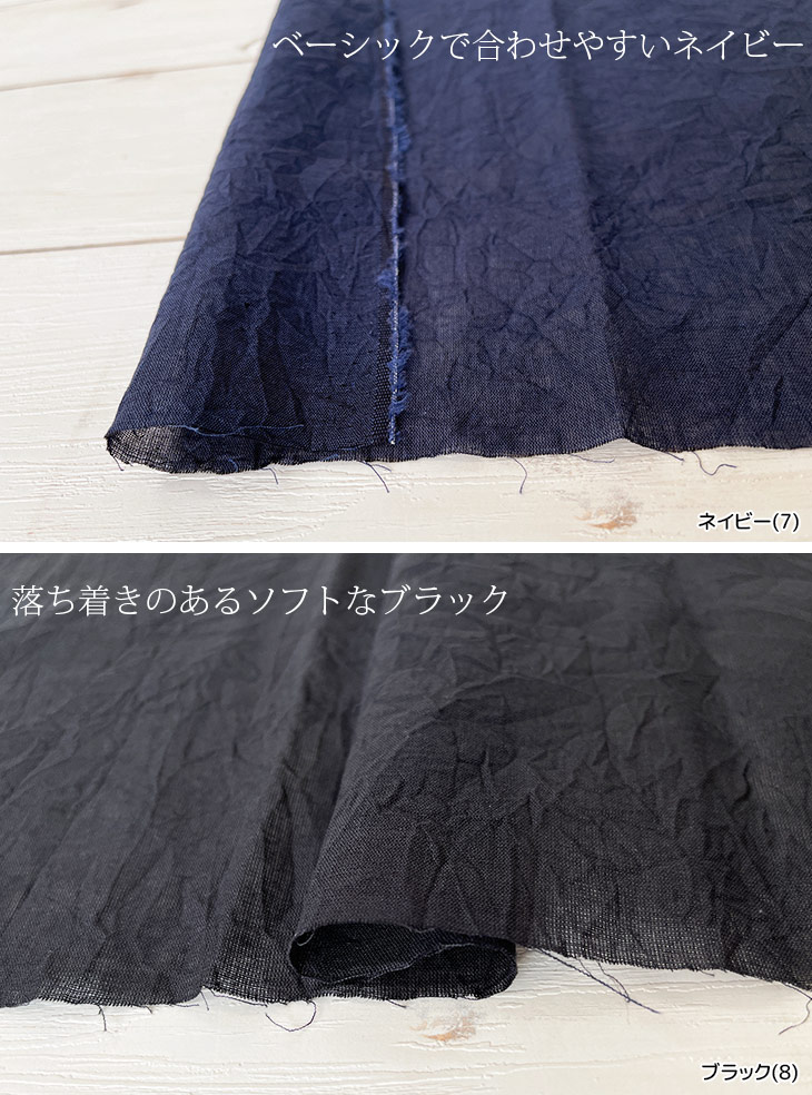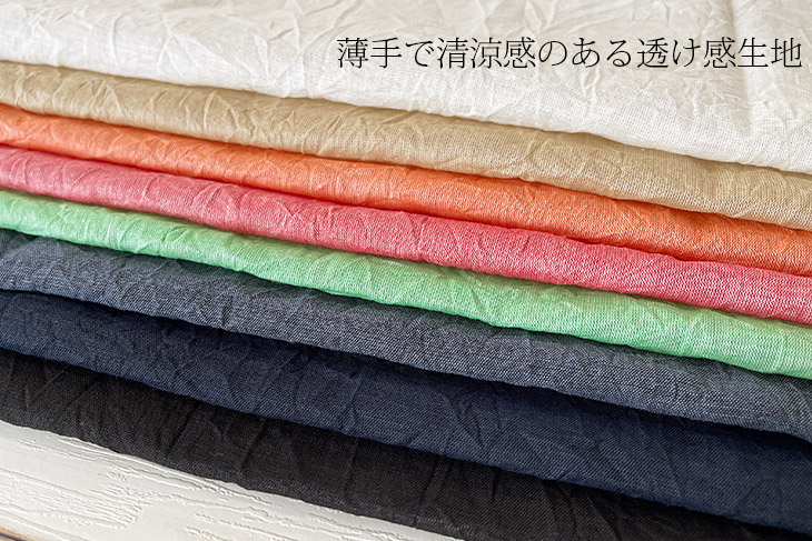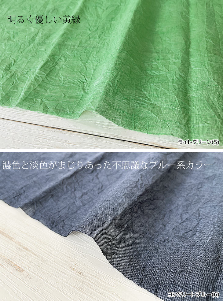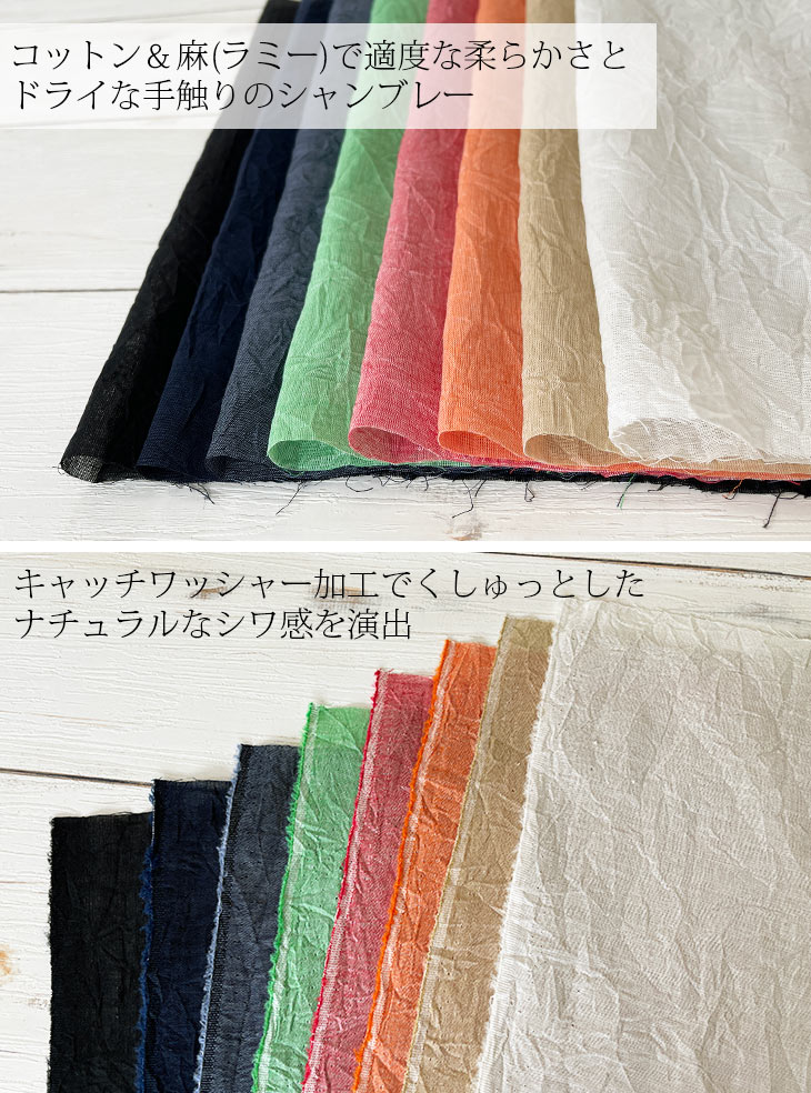 キャッチワッシャー加工を施し、手で掴んだシワのようなくしゅっとした表情感のあるナチュラルな印象の素材に仕上げました。