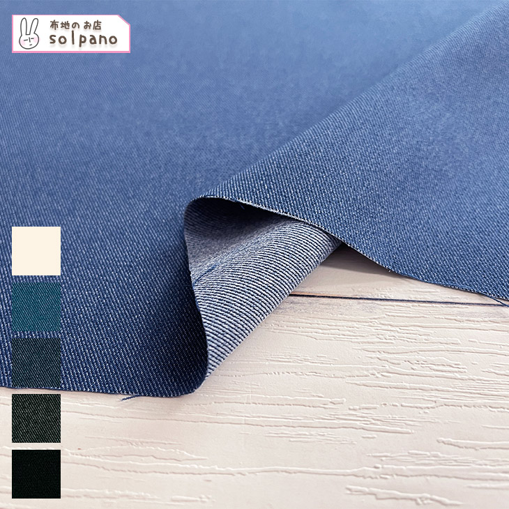 ポリエステル100%ながらまるでデニムのようなルックスを持ち、程よいハリ感とドライタッチな風合いが特徴です。