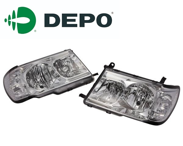 正規DEPO製 TOYOTA トヨタ ランクル ランドクルーザー 100系 前期 中期用 〜H17.3月 後期ルック ヘッドライト (クローム/メッキ) 左右セット D12-1103P-RD-E1