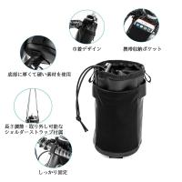自転車用ボトルケージ ハンドルバーバッグ 携帯収納ポケット付き ショルダーストラップ付き 自由調節可能 ウォーターボトルバッグ ケトルバッグ ボ