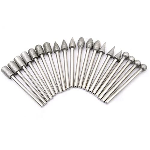 Kimlonton 20本セット 電着ダイヤモンドビット 軸付砥石 3mm軸ダイヤモンドバー 研削ツール 研磨仕上げ用 砥石 研削ビット ミニル