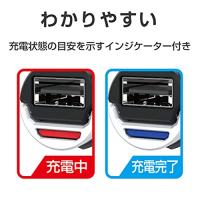 ・USB機器の充電状態の目安を示すインジケーターを搭載しています。 充電中は赤色、充電完了時は青色にインジケーターが変化します。