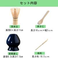 Yoseka 茶道具 茶筅 茶せん 100本立・くせ直し・茶杓・茶さじ お抹茶 4点セット 茶筌 茶筅セット 茶筅直し 茶しゃく 百本立(紺色)