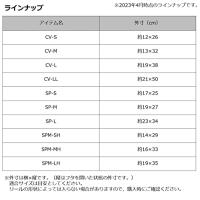 ・CV/SPタイプ:全面に水を通さないクロロプレンゴム素材を使用した簡易防水タイプ。 SPM-Hタイプ:メッシュ素材とクロロプレンゴム素材を組み合わせた湿気がこもりにくい通気タイプ。ハンドル収納ポケット付き。