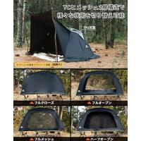 ・独創的な天窓、通気性が抜群 ソロテントは前後二つの大きい倒D字型のドアがあり、天井のスカイライトが揃って、通気性に優れています。ドアと窓は両層な構造でフルオープン、フルメッシ、フルクローズ、ハーフメッシュの切り替えが可能で自分の好みや気候条件に合わせて通気性とプライバシーを調整することができます。 天窓により、テント内に星を見ながら眠ることもできます。通気性の高さと天窓