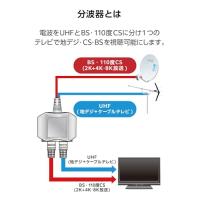 ・入出力側ケーブル付分波器。テレビの電波を地デジUHFとCS・BSに分けます。