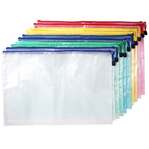 jlon 10枚 ジッパー式ファイル袋、A3サイズメッシュファイルケース PVC防水タイプ フォルダー 大容量 書類収納ケース 出張旅行整理必需