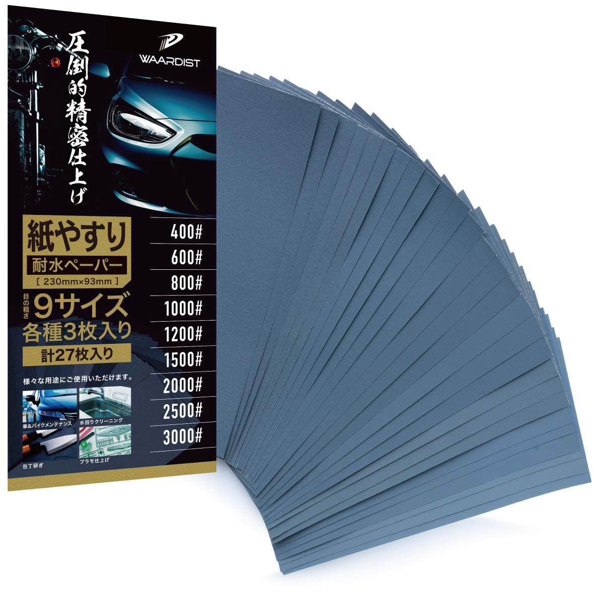 Waardist 整備士が監修 3000番 〜 400番 紙やすり 紙ヤスリ 耐水ペーパー セット サンドペーパー かみやすり 9種27枚