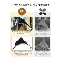 ・カーブデザイン|使いやすい強度と耐久性に優れたオリジナル曲線デザイン。 ガイロープの引っ張りを緩やかにし、テント上部への圧力を軽減するため、エッジは曲線にカットされています