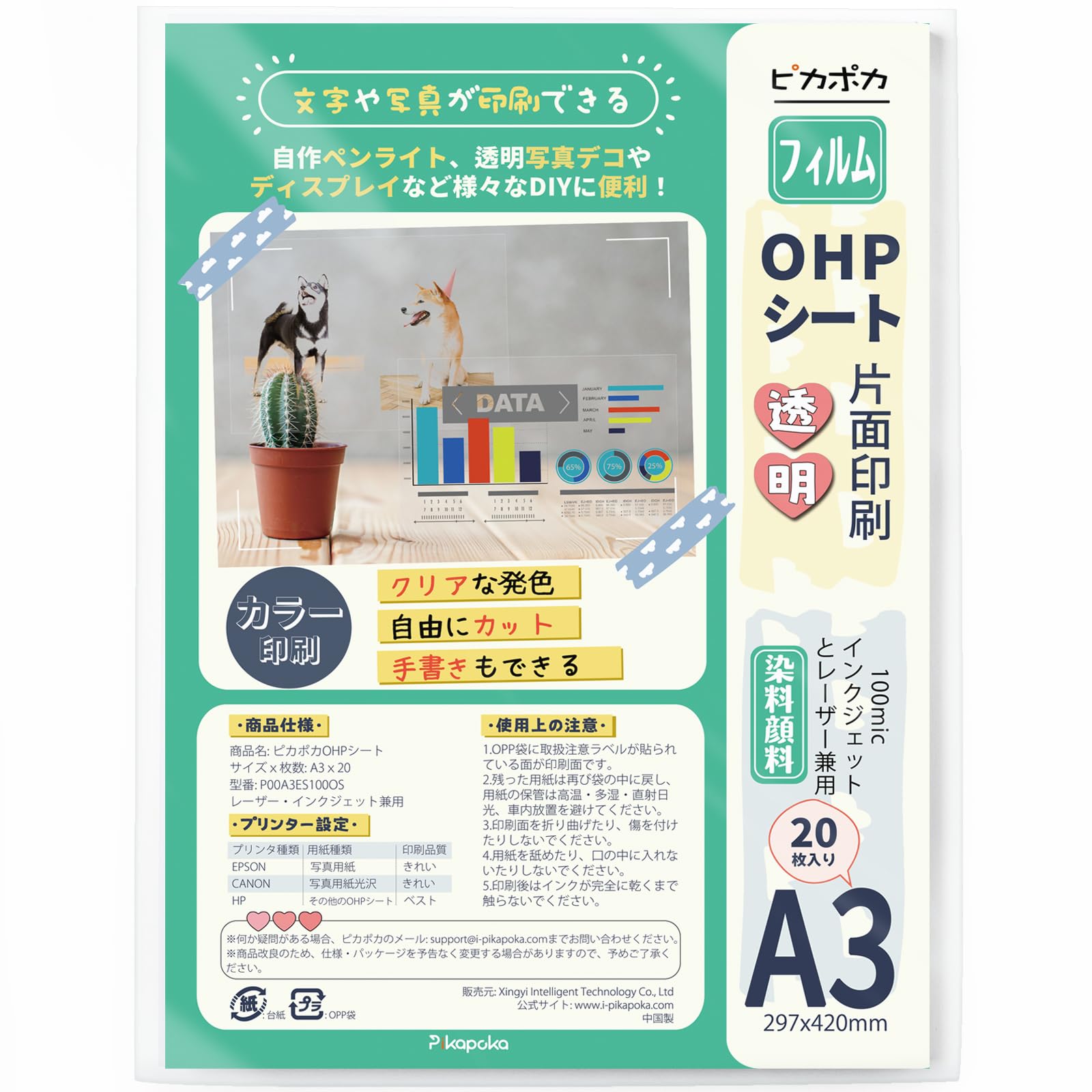 ・紙厚: 約0.1mm。ピカポカohpフィルムは特に透明なプラスチック製で、見やすく柔軟性があります。表、文字や写真などをきれいに印刷して、フィルム上に高品質な印刷物を作成することができます