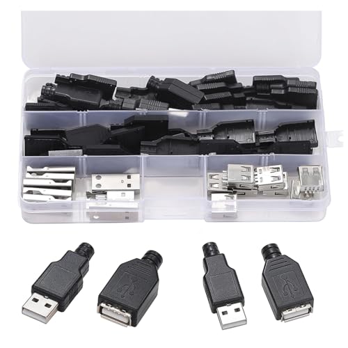 ・製品仕様: USB 2.0 タイプ A オス コネクタ 10 セット + USB 2.0 タイプ A メス コネクタ 10 セット。サイズ:オス:約48.7 x 15.97 x 8.78 mm 長さ x 幅 x 高さ プラスチックカバーを含む。メス:約32.8 x 16.8 x 10.16 mm 長さ x 幅 x 高さ プラスチックカバーを含む。出口穴:3mm。
