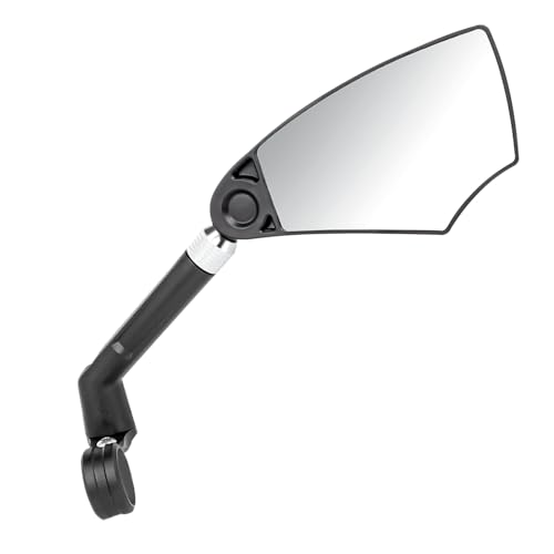 ・商品内容:ミラー右側用、六角工具、説明書サイズ:鏡全長約14cm、幅最大7.5cm / ブラケット長さ約12.3cm 5cm伸縮可能材質:ナイロン本体、ガラスミラー重量:101gミラータイプ:平面適用バー径:外径約20-23mmネジを緩めたり締めたりで調整主な特徴:360°回転、HD高解像度、5cm伸縮調節