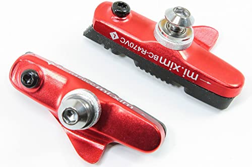 mi.Xim 軽量 シマノ/スラム互換 ロード用 キャリパーブレーキ用 カートリッジ式 ブレーキパッド ブレーキシュー アルミハウジング レッド