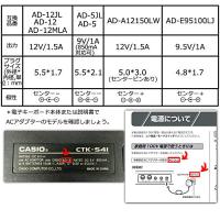 ・AD-5JL:出力:9V 1A プラグ:5.5 * 2.1mm 極性:センター − 対応機種:PA-1B、CTK-411、CTK-560L、CTK-571、CTK-650、CTK-625、LK-20、LK-22、LK-35、LK-36など