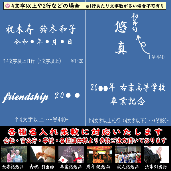 ・文字の大きさを変えたり記念名など追加料金が掛かる場合はご連絡後、金額修正させて頂きます