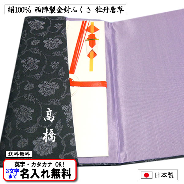 名前入り 高級 金封ふくさ 絹100% 正絹 西陣織 牡丹唐草 慶弔両用 ふくさ 袱紗 ネーム 日本製 送料無料 結婚式 葬式 冠婚葬祭 男性に人気 記念品 内祝