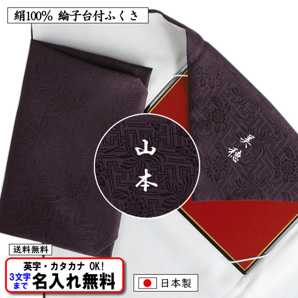名前入り ふくさ 台付 絹100% 慶弔両用 正絹 綸子 塗台付 紫 袱紗 金封ふくさ ネーム 模様有 日本製 結婚式 葬式 冠婚葬祭 記念品 送料無料
