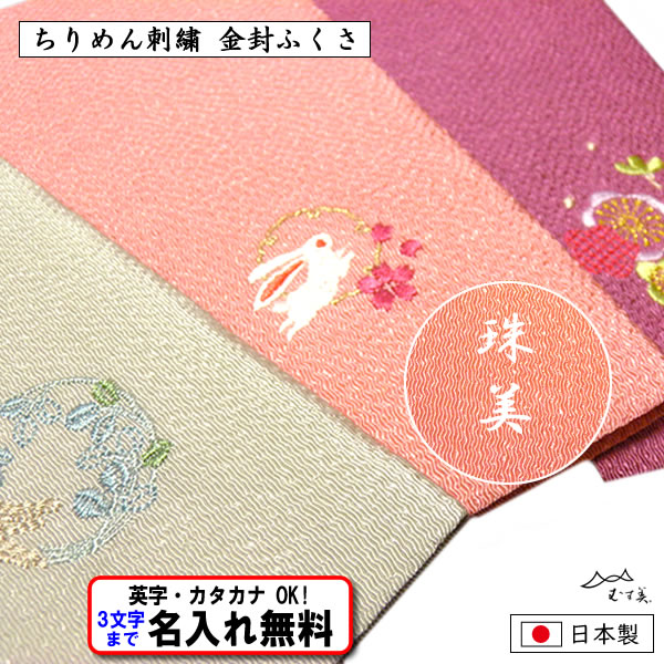 名前入り 金封ふくさ ちりめん 刺繍 慶弔両用 全3種 袱紗 ふくさ 縮緬 うさぎ 梅 萩 ネーム 結婚式 葬 式 冠婚葬祭 記念品 内祝 プレゼント むす美