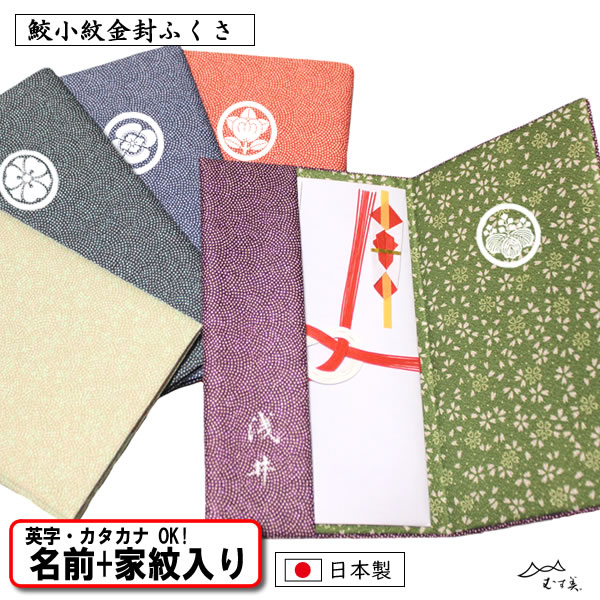 家紋入り 名前入り ふくさ 鮫小紋 慶弔両用 全4色 袱紗 金封ふくさ 金色可 家紋 ネーム 結婚式 冠婚葬祭 記念品 長寿記念 内祝 卒業記念品 返礼品