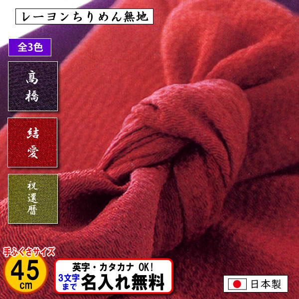 名前入り 絹のような風呂敷 45cm レーヨン ちりめん 無地 全3色 金文字可 ネーム 縮緬 日本製 結婚式 葬式 冠婚葬祭 記念品 プレゼント 内祝 ふろしき