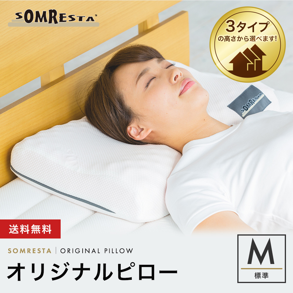 【4/5〜4/18 30%OFF】 SOMRESTA オリジナル ピロー M(標準) 枕 まくら 高反発 標準 高さ調整 抗菌 防臭 洗える カバー 横向き うつ伏せ 仰向け 肩こり
