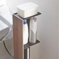 美しい木目でインテリア性のあるスタイリッシュなデザインのスリムトイレラック。トイレブラシやトイレ用洗剤など掃除用具からトイレットロールペーパーなどを隠して一括収納