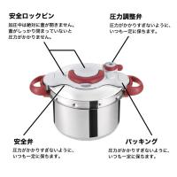 ●素材:【本体】ステンレス、【底】アルミニウム・ステンレス、【取っ手】フェノール樹脂、【ふた】ステンレス、【ふたハンドル・パネル】PBT(ポリブチレンテレフタレート)樹脂、【セクレター(おもり)】ナイロン66、【パッキング】シリコン、【中かご】ステンレス