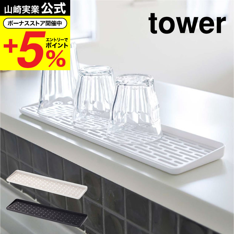山崎実業 tower スリム グラス&マグスタンド タワー キッチン 公式 ホワイト/ブラック グラススタンド 水切りかご 水切りトレー シンクまわり