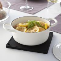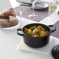 調理中の鍋の一時置きにも重量のある鋳物ホーロー鍋もしっかり置ける鍋敷き。シンプルでスタイリッシュなデザインだからダイニングでもキッチンでも場所を選びません。