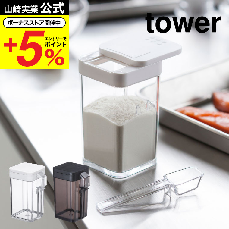 山崎実業 tower 小麦粉&スパイスボトル タワー キッチン 公式 ホワイト/ブラック 調味料入れ 調味料ケース 容器 スライド式 小さじスプーン付き