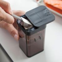 さらさらタイプの小麦粉やスパイスなどを簡単ふり掛け!小さじスプーンは容器に収納。小さじスプーン(5ml)付きで、すり切りも可能。片手で操作できるので調理もスムーズ。パーツはすべて分解して洗えるので、お手入れ簡単。使いたい量が片手で調節できる調味料保存容器。詰め替え用のさらさらタイプの小麦粉や塩コショウ・スパイス等をふり掛けられます。前後にフタをスライドさせ、分量を選んで出すことが