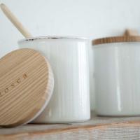 ヴィンテージ加工された風合いが美しい陶器キャニスター