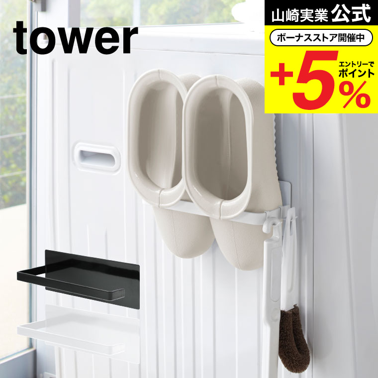 山崎実業 tower マグネットバスブーツホルダー タワー 収納 公式 ホワイト/ブラック 送料無料 洗濯機横収納 バスブーツ置き タオルハンガー