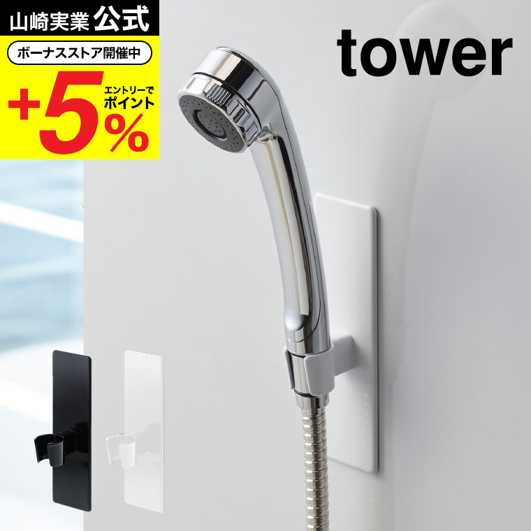 山崎実業 tower マグネットバスルームシャワーフック タワー キッチン 公式 ホワイト/ブラック バスルーム収納 シャワーホルダー 浴室収納