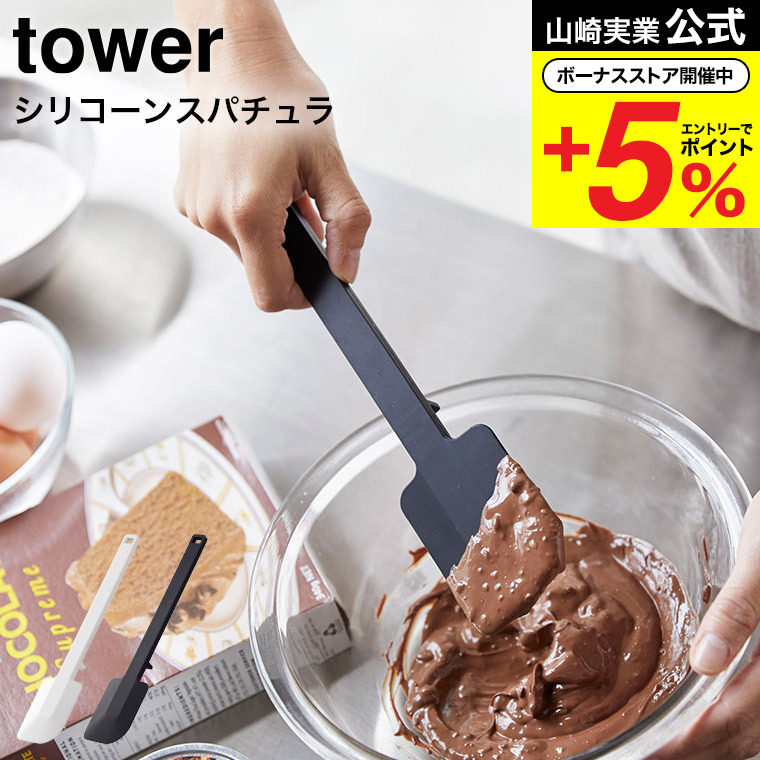 山崎実業 tower シリコーンスパチュラ タワー キッチン 公式 ホワイト/ブラック お菓子作り キッチン用品 シリコン ヘラ スクレーパー 直置き