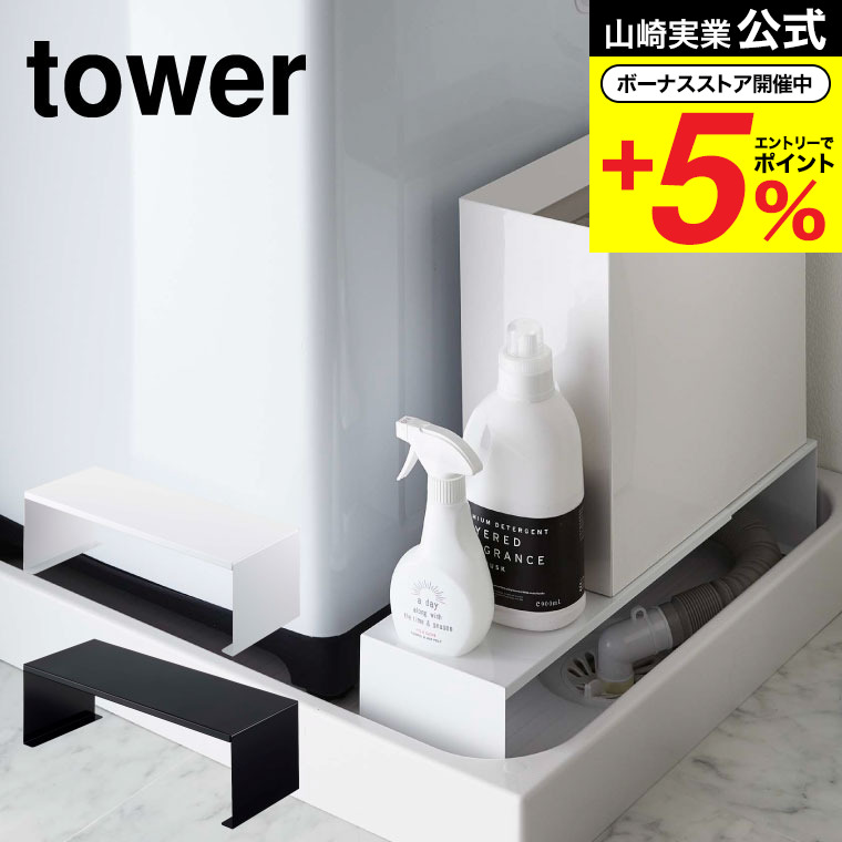 山崎実業 tower 伸縮洗濯機排水口上ラック タワー 洗濯 公式 ホワイト/ブラック 洗濯機横 洗濯ホース 収納 棚 台 ランドリー収納 送料無料